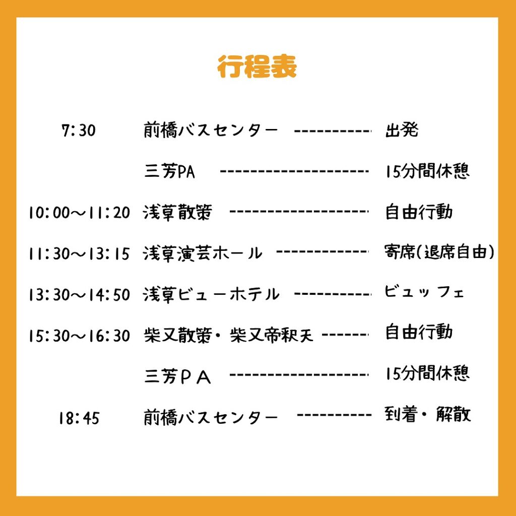 備考:大型バス2台で、途中休憩をはさみながら現地に向かいます。