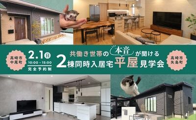 2/1(日)共働き世帯の本音が聞ける!2棟同時入居宅平屋見学会@高崎市