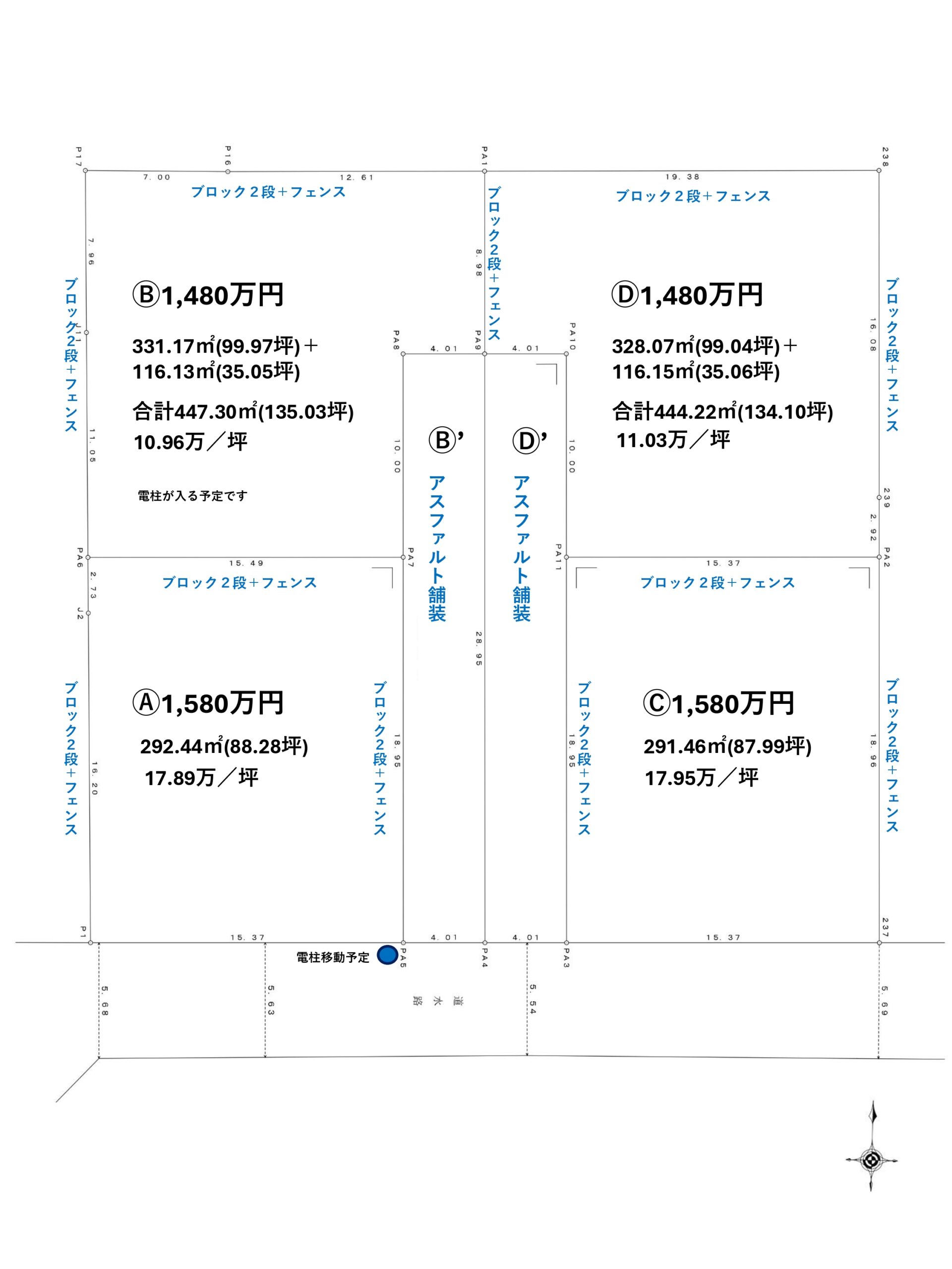 | No.2 | 1480万円 | 447.30㎡(135.03坪) | B |