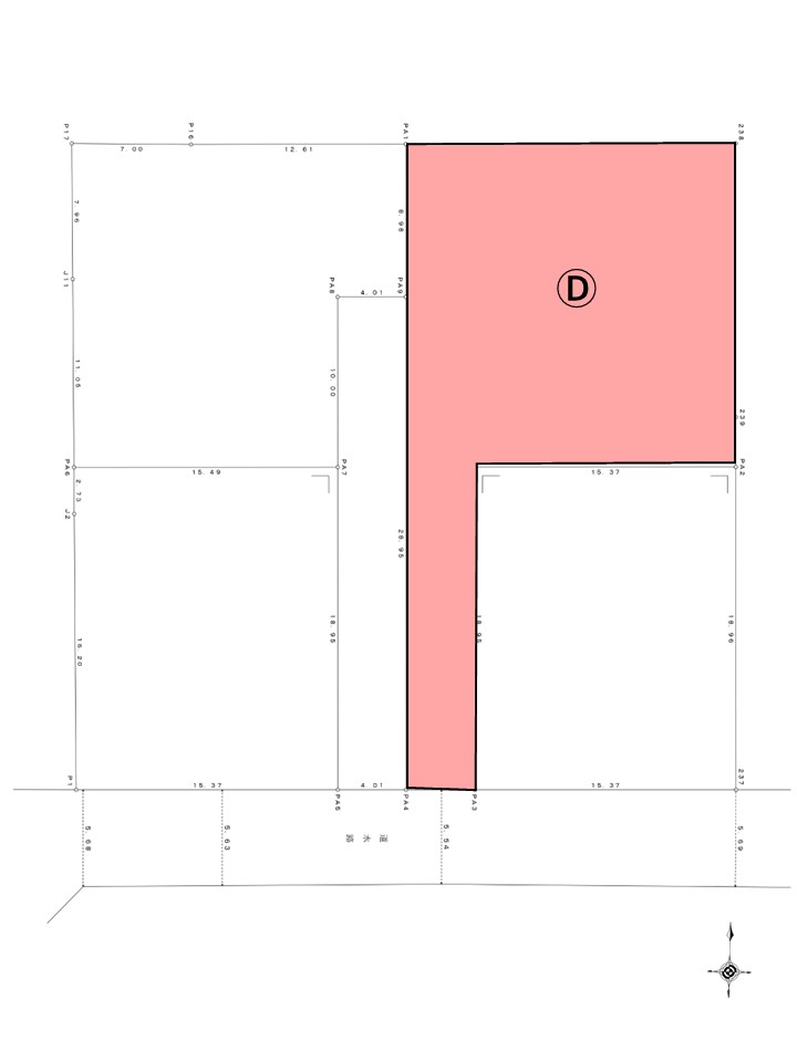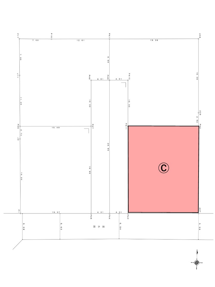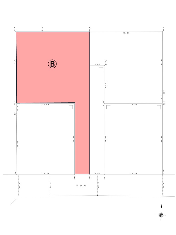 ・B’とD’は地役権を設定します。地役権設定費用が別途掛かります