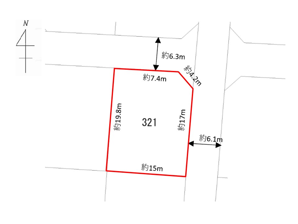 - 東(幅員約6.1m)・北(幅員約6.3m)