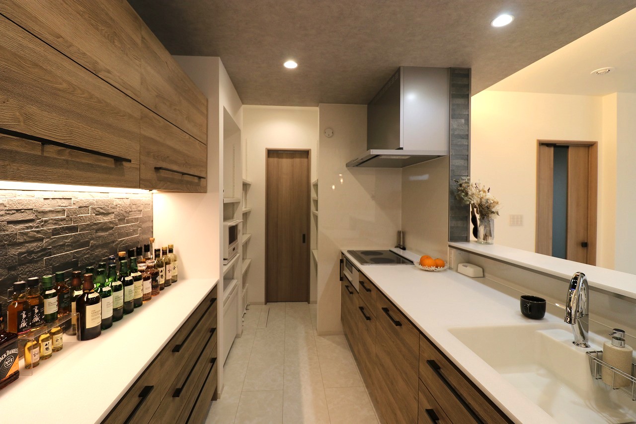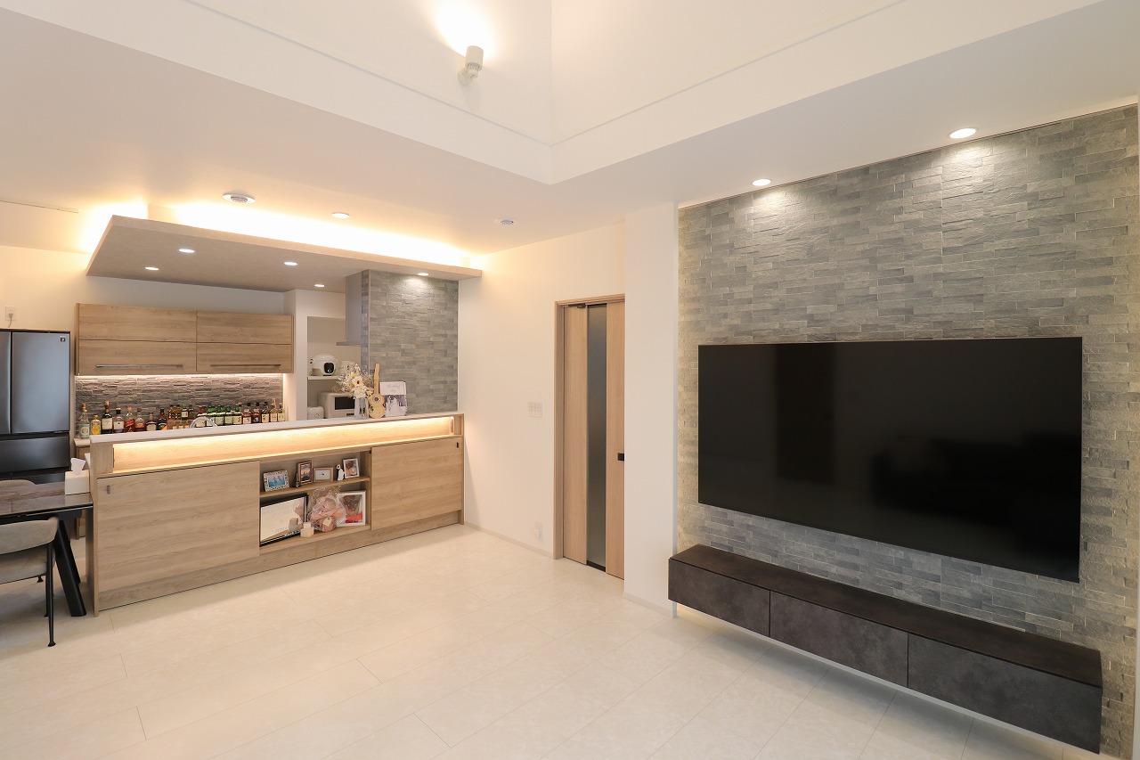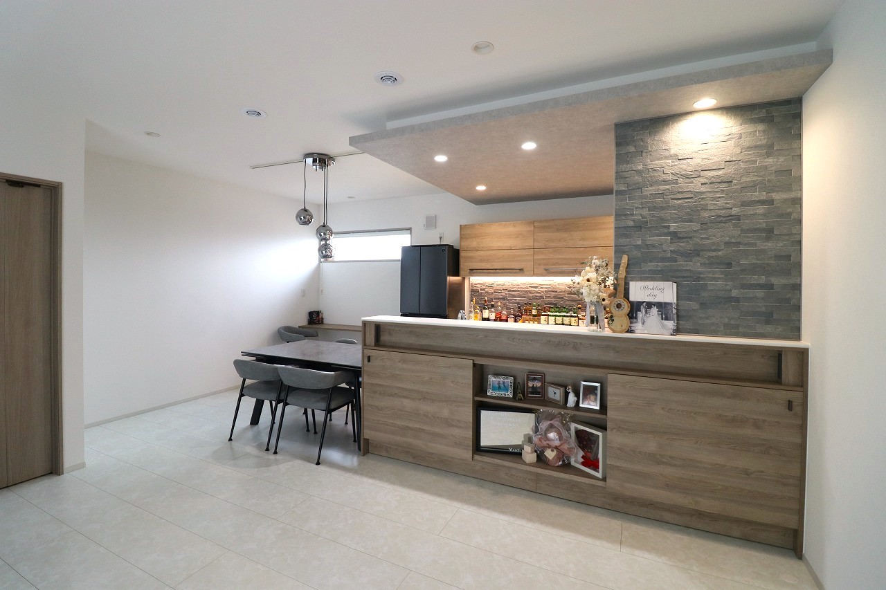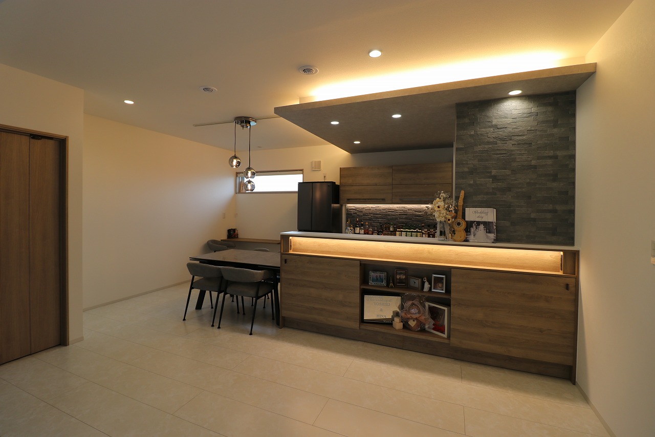 間接照明で照らされたキッチンやインテリアの一つ一つが目を引きます♪