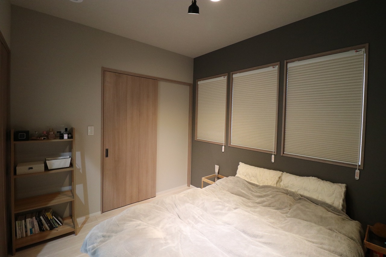 窓の高さよりもカーテンを高く設置することで、勾配天井の高さを活かし、より空間の広がりを演出できます。
