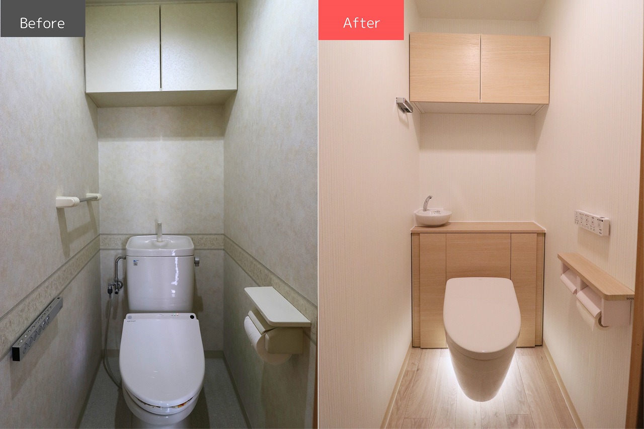 キッチンはより広々とした印象に、トイレは見た目のすっきり感とお掃除のしやすさを兼ね備えた空間に仕上がりました。