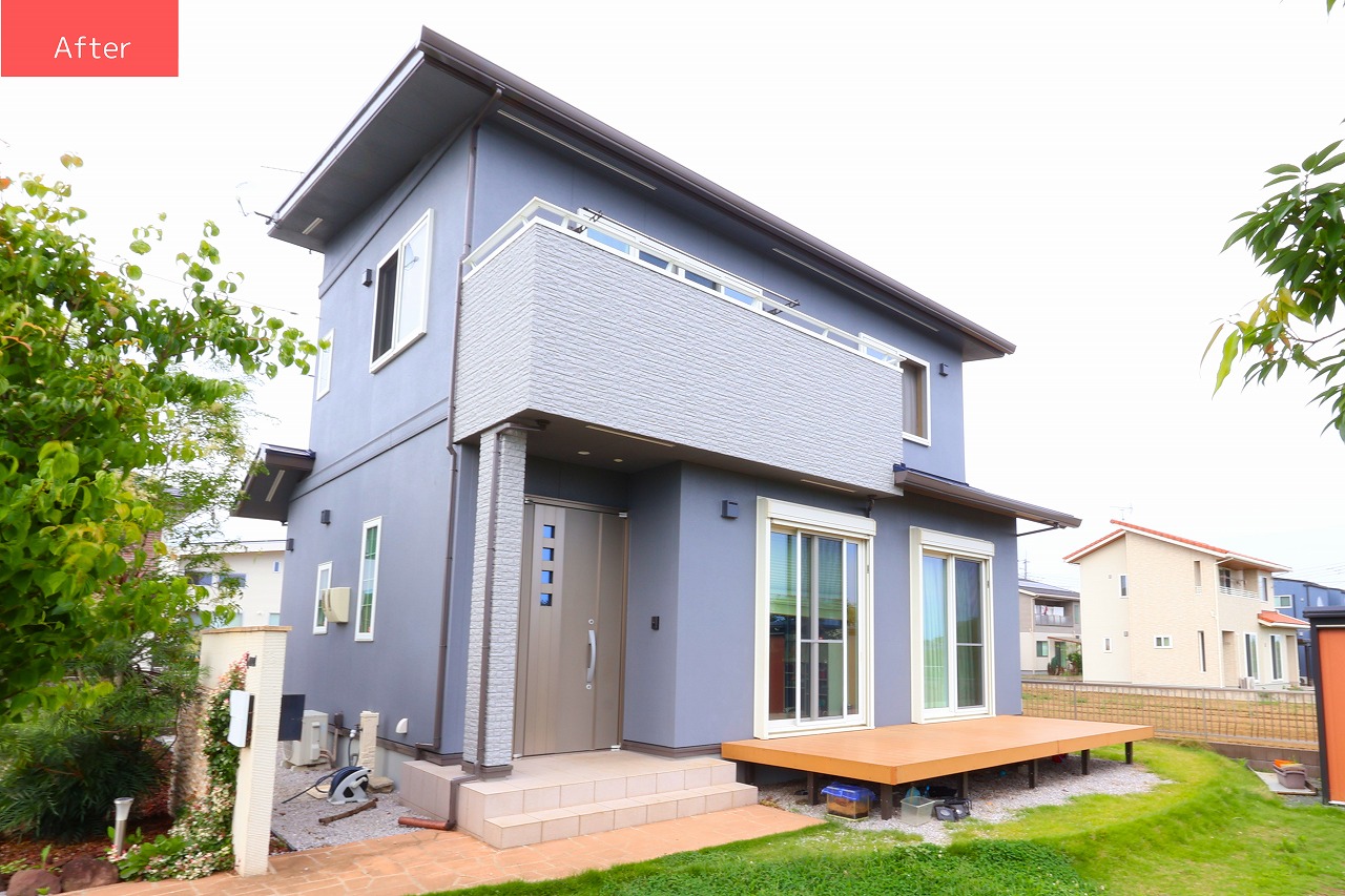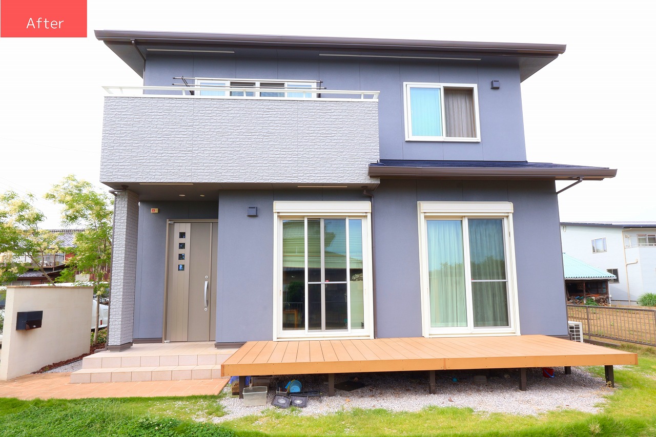 外壁を塗り替えるにあたり、どうせならガラッと雰囲気を変えたいということで、スタイリッシュな外観に生まれ変わりました。